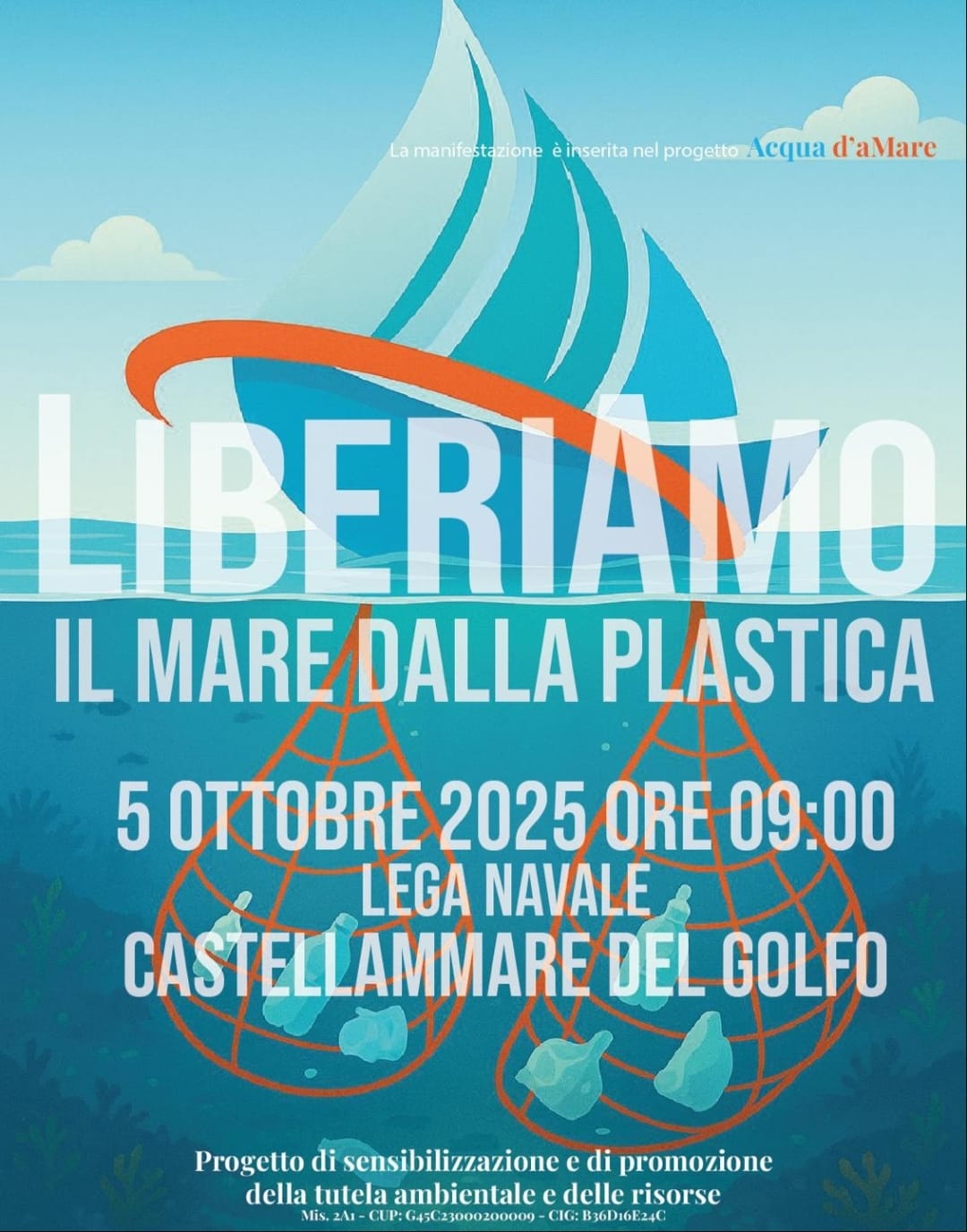 Evento “Liberiamo il mare dalla plastica” 5 Ottobre 2025 ore 9:00 – Lega Navale (Castellammare del Golfo) Postato il 30 Settembre 2025 da FLAG "Golfi di Castellammare e Carini" Allegati evento_mis.2.A1_Fare_Ambiente